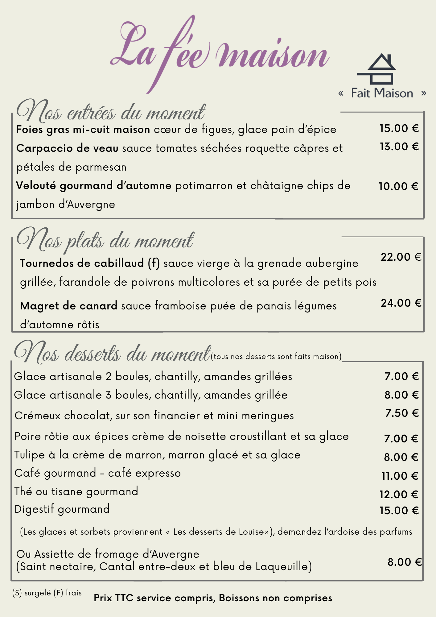 Restaurant français | la Fée Maison | le Puy-de-Dôme