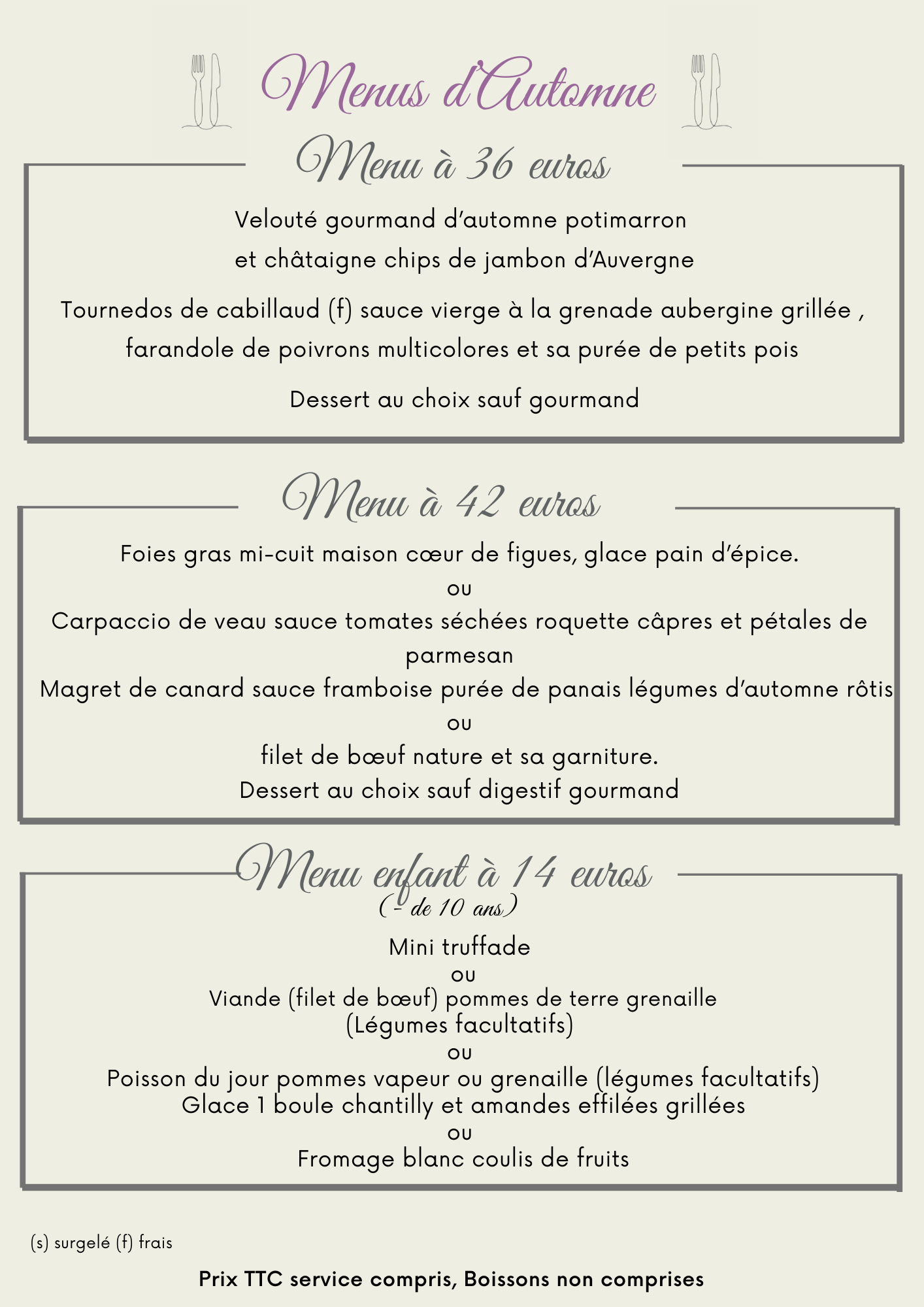Notre cuisine est basée sur des plats régionaux telle que la truffade, les cuisses de grenouilles...